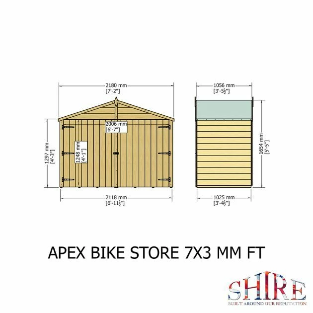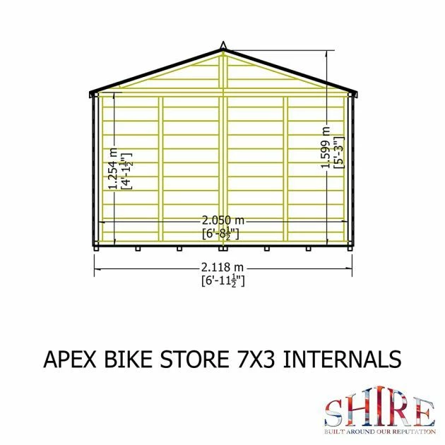 The shire apex bike store can store up to 3 adult bicycles or can be utilized for storing outdoor toys or gardening equipment. The wide double doors allow you to gain easy access to your stored goods, while the apex roof provides an attractive feature to this garden building, helping it maintain your gardens chic look. The doors come fitted with a hasp and staple, which can be padlocked closed for extra security. The wall panels are constructed from 12mm thick shiplap planks, which are Quality Approved. The bike store also comes with a factory coated base coat, in a honey brown colour, ready for you to then coat with a topcoat of your choice. As always with shire products, the bike store comes complete with a fixing kit, roofing felt, installation instructions and a years warranty.