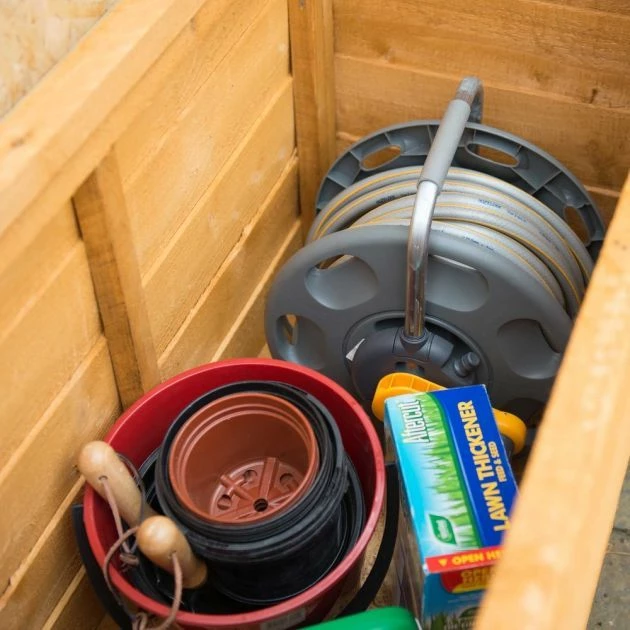 Forest Garden 4 x 2 Dip Treated Overlap Storage Box: The Forest Garden storage box is a practical storage solution, ideal for storing garden equipment and tools. The 4 x 2 Forest garden wooden box is built using 7mm overlap cladding for the walls and 8mm OSB sheet board for the floor and roof. The overlap storage box comes with a hinged, lightweight lift-up lid to enable quick and easy access to everything inside and a black sand felt for the lid is provided to protect your items for the elements. The dip treated storage box has a 300 litre capacity to offer plenty of storage space and the floor is mounted on pressure treated bearers to keep it off the ground and remain dry.