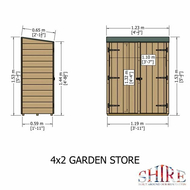 Shire Garden Store 4 x 2: The Shire garden building is a great little storage unit for keeping your gardening tools, step ladders and outdoor equipment all in one place. The Shire storage unit is manufactured with 12mm shiplap tongue and groove walls for a solid structure and OSB roof and floor boards. The Garden Store mounts very easily against a wall or fence side and require minimal floor space whilst offering a very useful outside cupboard for storing those items that you don’t really want in the home.