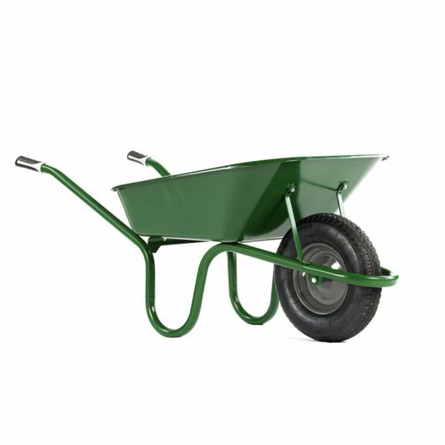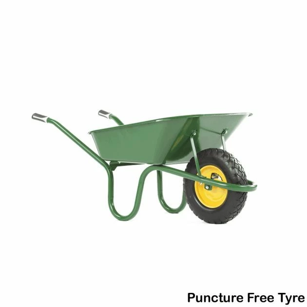 Haemmerlin Aktiv Advance 90LTR Wheelbarrow: The Haemmerlin Aktiv Advance wheelbarrow has a reinforced 90 LTR green epoxy coated tray with a European pan style design which is thicker than the Aktiv Original model. It is designed to stand more weight making it a high performance heavy duty wheelbarrow with heavy duty tray supports to reinforce the chassis. The strong one piece tubular design frame has been designed with usability in mind and includes a tipping bar for easy unloading. There are two wheel options for this model which include Pneumatic and Puncture Free, select the tyre type that is most suitable for your needs. The wheelbarrow is fully assembled when delivered to avoid any complication and can be used straight away.