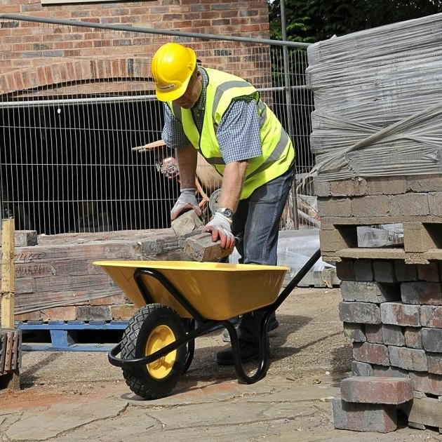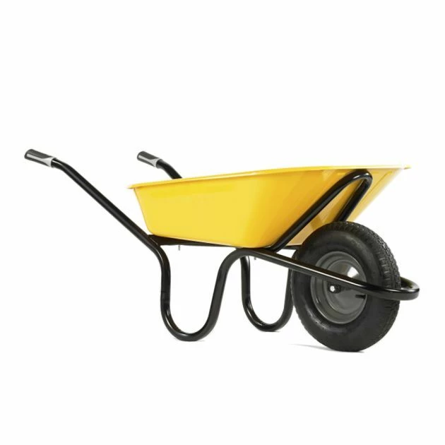 Haemmerlin Aktiv Extreme Alpha Original 90LTR Wheelbarrow: The Haemmerlin Alpha Original Wheelbarrow is the absolute in 90LTR barrows, the heavy duty nature of this wheelbarrow means that you can get the best out of this product. Manufactured with top of the range parts this wheelbarrow features a yellow epoxy powder coated tray, European pan style design, tray with side ribs for added strength, double shifted edges for extra strength and safety and a choice of 3 wheel options. The added benefit of this model is that it has the revolutionary ALPHA FRAME which is unique to Haemmerlin wheelbarrows, this special frame has a tubular design forming a strong cradle at the front but also a welded joint in the centre of the framework to strengthen the whole structure. This Wheelbarrow is fully assembled when delivered allowing you to get straight to work