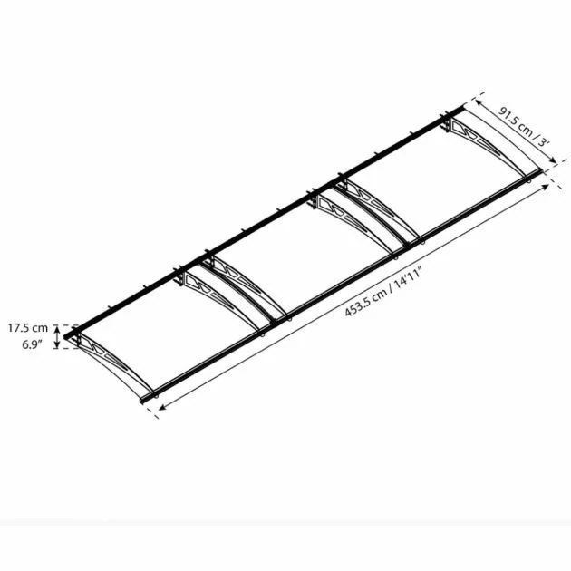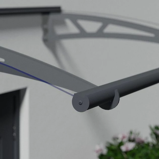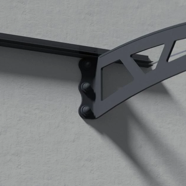Palram-Canopia Canopy Altair 4500 Grey Clear: The Palram-Canopia Altair 4500 door canopy is designed to decorate your entrance and features a high impact 4mm solid panel to protect your door or veranda from harsh weather conditions. The galvanised steel support arms and dark grey aluminium profile is powder coated creating a rust resistant structure to protect from harmful UV rays. Directing rain sideways is the front gutter and hidden back gasket, helping to protect your entry way. The Palram-Canopia door canopy is delivered flat packed for easy and straightforward assembly with all fittings and assembly instructions included within the package.