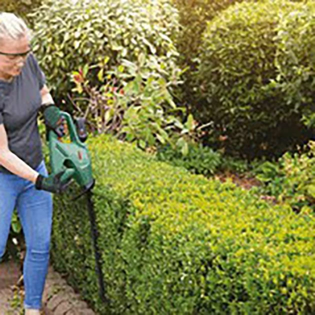 Maintain and trim your small to medium sized hedges with Bosch EasyHedgeCut 18-45 Hedge Trimmer (Classic Green). It is ergonomiically designed and exceptionally lightweight for a comfortable and easy handling in different working postions.