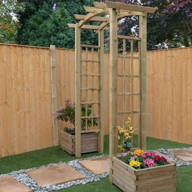 The Mercia Bow Top Garden Arch with its stylish design, is the ideal addition to enhance your garden. Create an elegant walkway between different parts of your garden or simply adorn your garden path to really give your garden that wow factor. The lattice trellis design on both sides of the arch, makes it perfect for supporting roses and other climbing plants to add some create a beautiful walkway within your garden.