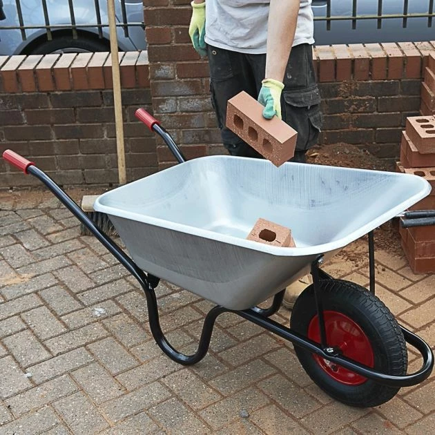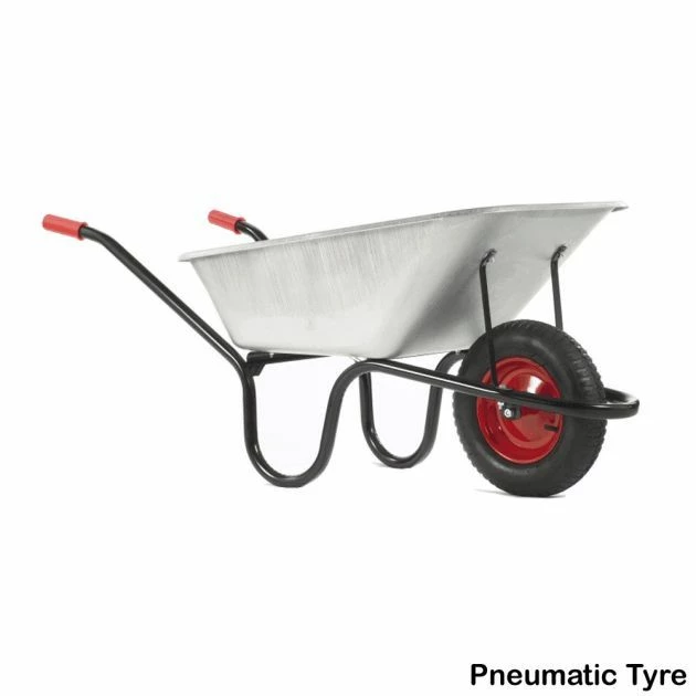 Chillington County 120LTR Wheelbarrow Galvanised: The Haemmerlin County wheelbarrow has a large 120LTR capacity with a specially designed deep, narrow and thick tray consisting of galvanised steel. The wheelbarrow has a reliable one piece tubular design frame with front tray supports to add extra strength to the tray. The county has a large wheel with the choice of tyre types, select from the reliable solid tyre, the smooth comfortable pneumatic tyre with inner tube or have the best of both worlds with the new puncture free tyre. This wheelbarrow is fully assembled when it arrives allowing you the simplicity of getting straight to work on that next project.