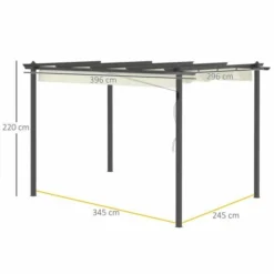 OUTSUNNY Wall Mounted Pergola With Retractable Canopy Beige 3m X 3m