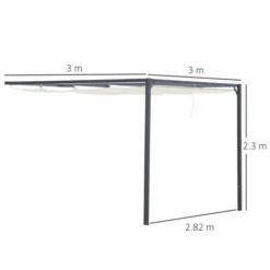 OUTSUNNY Wall Mounted Pergola With Retractable Canopy Grey 3m X 3m
