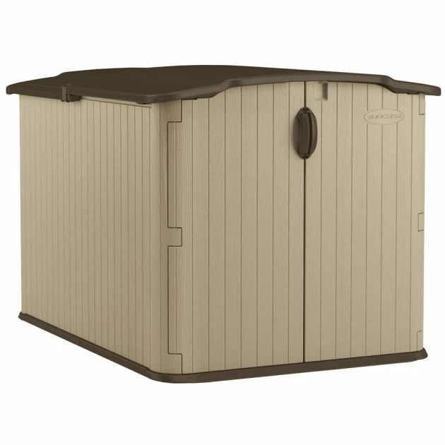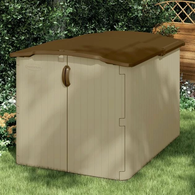 Suncast Kensington 7 Storage Shed: This heavy duty storage shed from the Suncast range will provide you with a multi-functional area to store anything from a mobility scooter to a lawnmower. The shed has a reinforced floor to allow for storage of heavier items and a 3 door locking system for maximum security for your stored items. This storage box has a glide top sliding lid and double doors for easy walk-in access allowing you plenty of room to manoeuvre your items into place. This storage shed is finished in an attractive sand colour with chocolate accents to the double wall resin walls and lid. There is a 10 year manufacturer’s warranty included for total peace of mind.