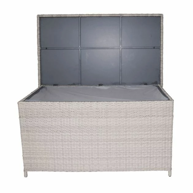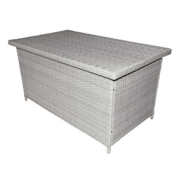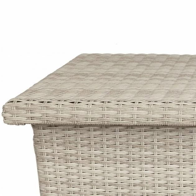 Royalcraft Lisbon KD Cushion Box: The Lisbon Cushion Box by Royalcraft is a convenient store, the perfect addition to any garden furniture set, ideal for keeping your outdoor cushions and toys sheltered and in a practical place. The Royalcraft Box comes in an attractive white sand colour rattan, made with polyethylene double half round wicker and is hand woven onto an aluminium frame and also includes a handy waterproof zipped lining.
