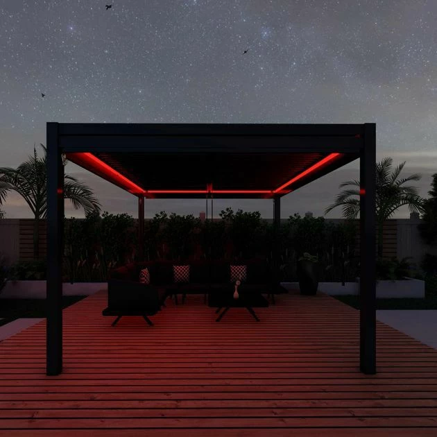 Effortlessly operating blinds is essential for many households, as it allows for privacy and protection from the sun’s rays. That’s why our blinds come with a simple crank handle, allowing you to lower and raise your blinds to your desired level with minimal effort. Additionally, we understand that lighting changes the mood of a room and that LED lighting can help set the perfect ambiance. Therefore, we’ve integrated remote-controlled mood lighting strips around the perimeter of our gutter system. With the ability to adjust the colour, brightness, and even automated colour changing options, you can effortlessly create the ideal ambiance for any occasion. The gazebo would require a 240-volt socket for the lights to be activated. In addition, it requires 2 people to assemble and the suggested build time is 2hrs.