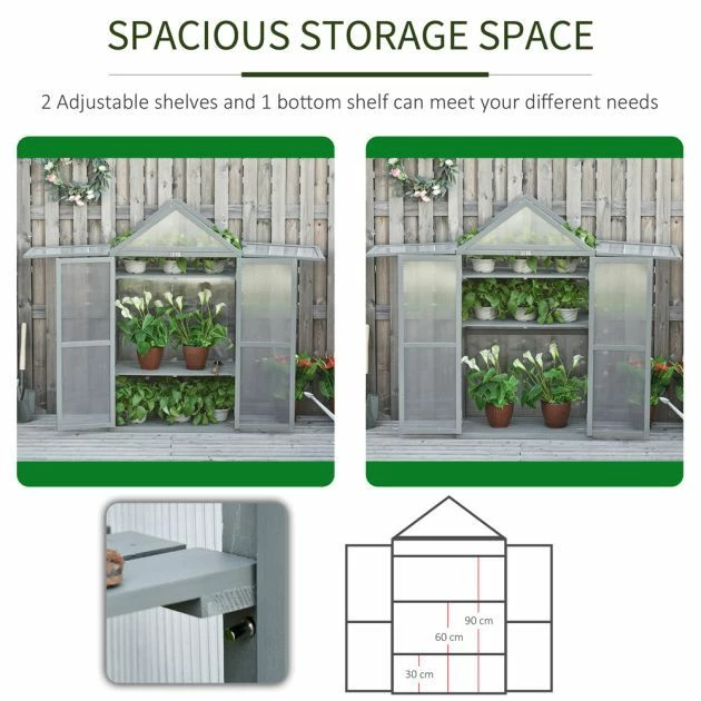Apex Mini Greenhouse with Shelf Grey 1m