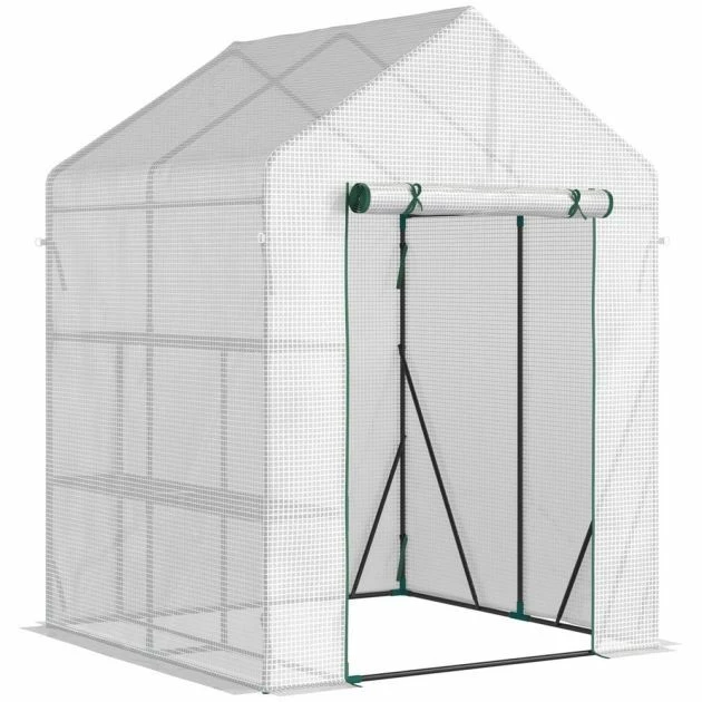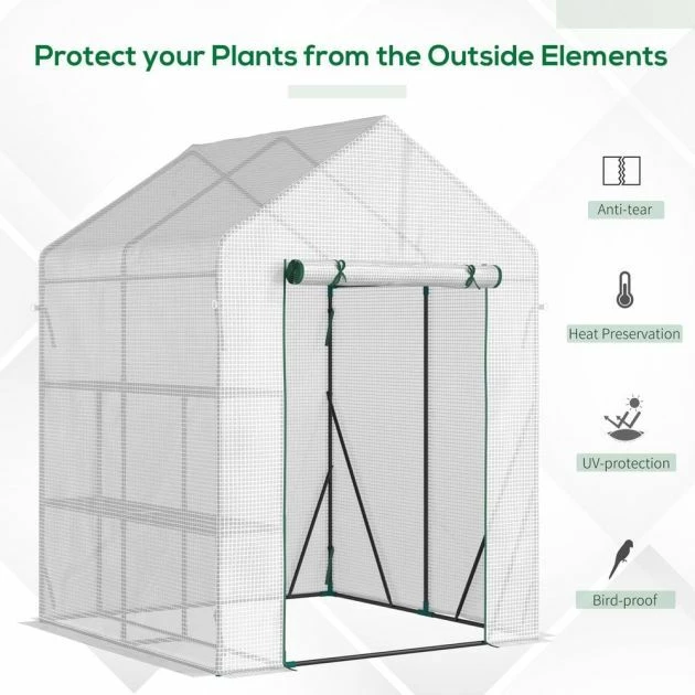 Get this portable greenhouse from Outsunny to extend your growing season by protecting plants from cold and birds. It comes with a steel frame for a steady core. The PE cover creates a protective shell, holding in the heat and shielding from wind and rain. Features a roll-up door to enter and leave to access your plants at any time. Simply put up, go and grow. This small greenhouse can be the ideal solution for gardeners who want to keep their plants safe and secure throughout the cold.
