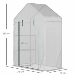 This walk in greenhouse from Outsunny is perfect for any garden enthusiast, whether youre a beginner or a season pro, this greenhouse definitely is a great addition to any garden. The greenhouse is constructed from a solid steel frame and is covered in a PE cover which effectively keeps plants and vegetables more secure than if they were on their own. The roll up door ensures that excellent ventilation can be achieved and also allows for air flow to be managed with ease.