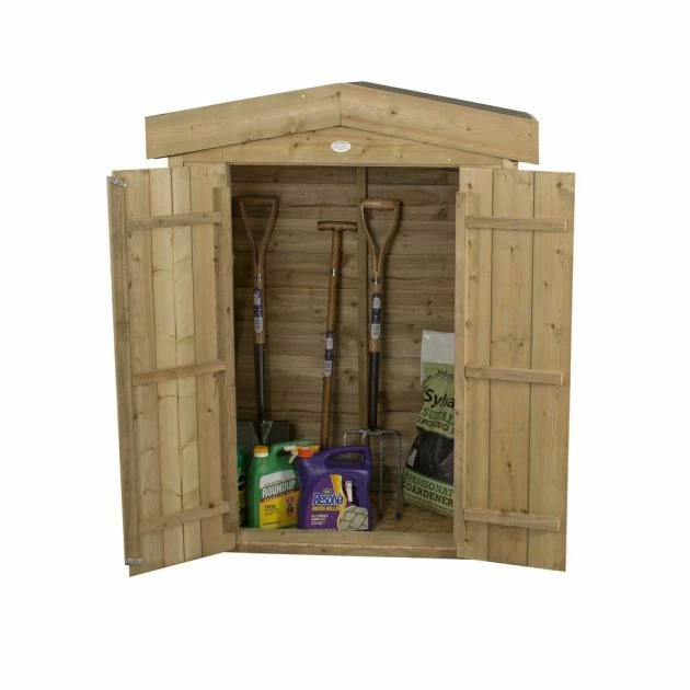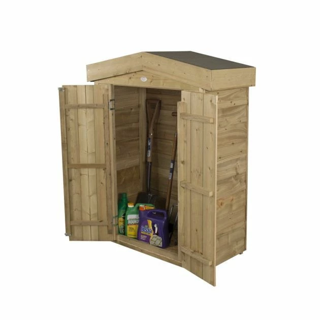 Forest Garden Pressure Treated Overlap Apex Garden Store: The Forest Garden apex storage unit is wonderful for keeping all your garden items in one place when space is limited. The 4 x 2 apex garden store is made from Quality Approved timber, 7mm overlapping boards and 8mm OSB roof and floor with shiplap front panels. The wooden garden storage unit features hidden door hinges for added security and a plate hasp and staple closure for use with padlock (not included). This attractive garden store has a natural wooden finish and has been pressure treated to protect against rot.