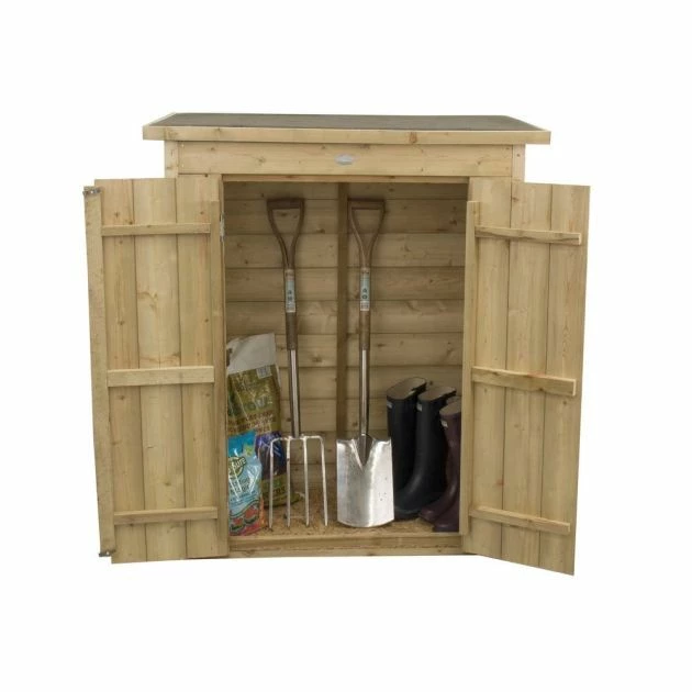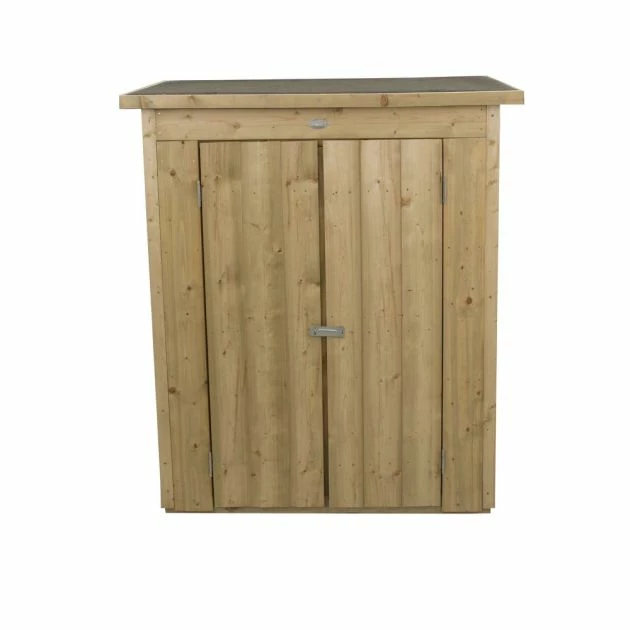 Forest Garden Pressure Treated Shiplap Pent Garden Store: The Forest Garden outdoor store is the perfect place for storing away garden items to be kept out of sight. The robust and attractive 12mm shiplap tongue and groove construction provides a strong structure and the clever pent roof design can be assembled sloping back or forward to suit its location. The boards are treated with an anti-fungal preservative forced into the timber under pressure for a natural timber finish. The wooden garden storage unit features hidden door hinges for added security and a plate hasp and staple closure for use with padlock (not included). The Forest Garden outdoor store features a green mineral roof felt material to keep the building weathertight.
