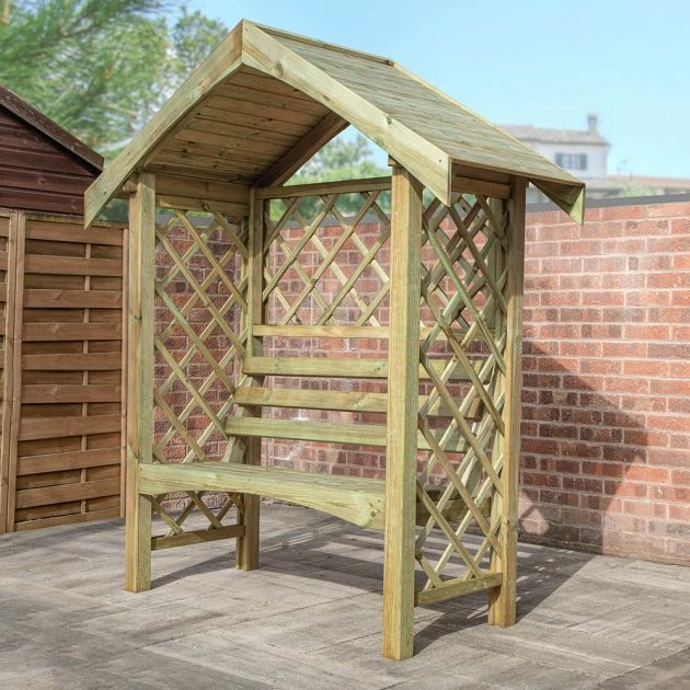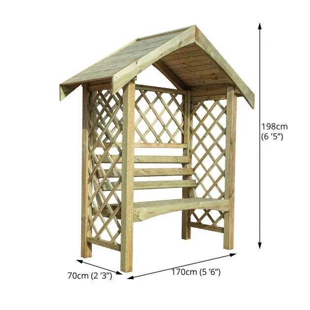 This arbour features a stunning trellis design, which is ideal for growing climbing plants, to help to create a beautiful and colorful setting in your garden. Finished off with wooden roof covering, allowing you to spend time to sit and relax in the garden even on cloudy days.
