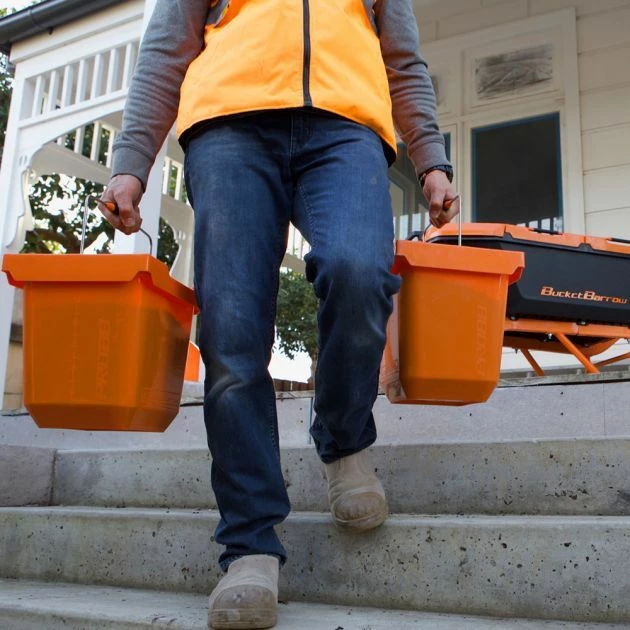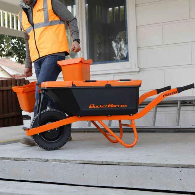 The Pro88 Wheelbarrow Kit Orange/Black 88L 180Kg Capacity BucketBarrow System is the first to integrate a multipurpose 12 litre Scoop and four quality 15 litre Buckets into a PRO88 professional narrow wheelbarrow for optimal material loading, unloading, movement and placement in tough work environments. Great Innovations for your heavy-duty work environment and complete your hard-to-reach jobs safer, easier and faster with the patented, practical innovation of the BucketBarrow System. It is ideal for your building and construction, industrial, landscaping, agricultural, animal care and horticultural environments. Its narrow design and large load carry capacity excel high density property and construction environments and its compact size enables easy storage on site and in work vehicles.