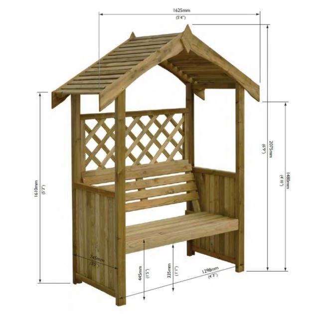 Rowlinson Salisbury Arbour: The Salisbury Arbour is an attractive garden feature perfect for relaxing outside in the summer months without taking up to much garden space. The Rowlinson Arbour features a tradition style with an open slatted roof, long slatted strips for a back rest and lattice back panels ideal for supporting climbing plants for a natural finish. The Salisbury Arbour is crafted from Quality Approved timber which has been pressure treated throughout to help protect against rot for added longevity.