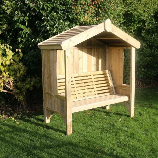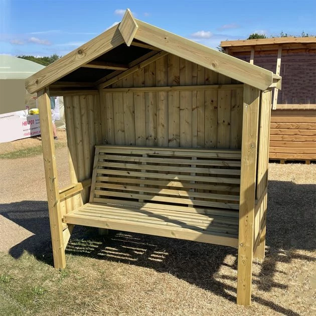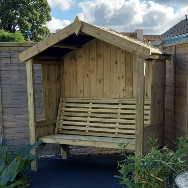Three Seater Cottage Arbour: The Three Seater Cottage Arbour enhances your garden and create your own peaceful sanctuary with this magnificent handcrafted garden arbour. Created with passion for traditional woodwork and authenticity, this outdoor leisure option is built to last for years to come, offering you a value for money structure that not only looks amazing but offers you a comfortable seating area where you can relax and float away from the stresses of the day.