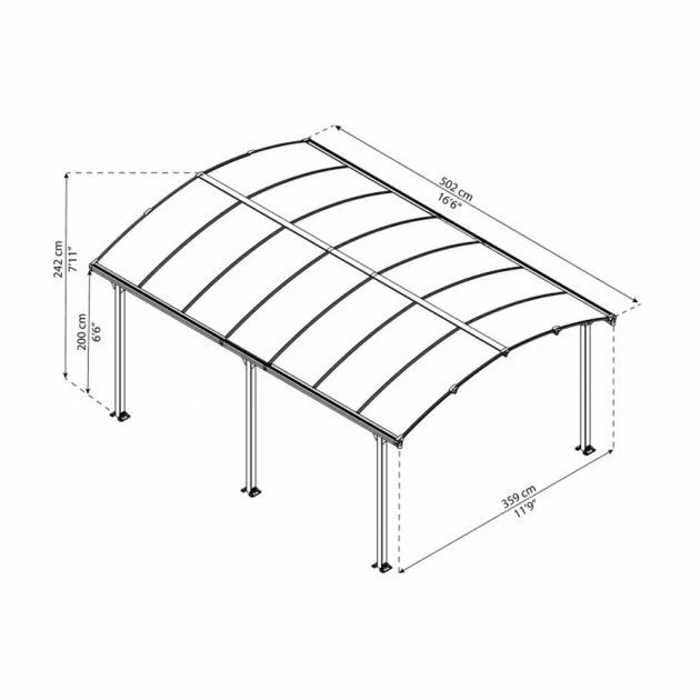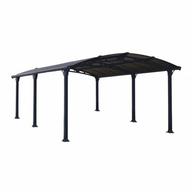 Palram-Canopia Tuscon 4300 Garden Gazebo – Grey: The curved Palram-Canopia Tucson 5000 Garden Gazebo has a contemporary design and is fully weatherproof, therefore is an ideal addition to any garden that needs a shelter. The heavy-duty, powder-coated, reinforced aluminium frame makes for a rust-free and very sturdy yet lightweight structure. The premium polycarbonate roof panels are virtually unbreakable and 100% UV-protected for your protection and peace of mind. The gazebo conveniently transmits natural sunlight yet provides ample shading. The built-in gutter system will ensure that there will be no water damage. Maintenance free, beautiful and functional, this gazebo will appeal to any garden enthusiast.